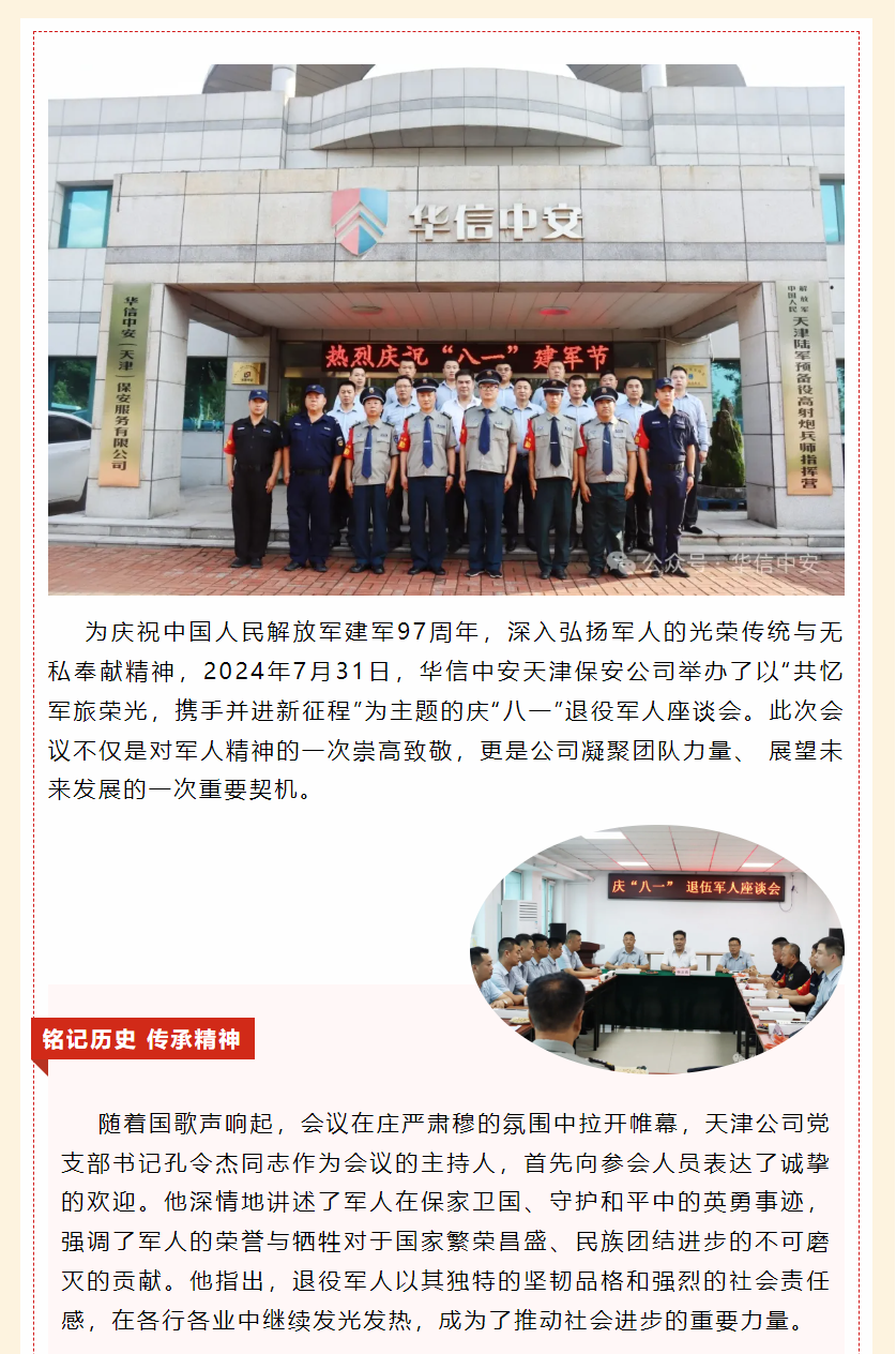 【共忆军旅荣光,携手并进新征程】华信3044永利集团天津保安公司举办庆“八一”退伍军人座谈会