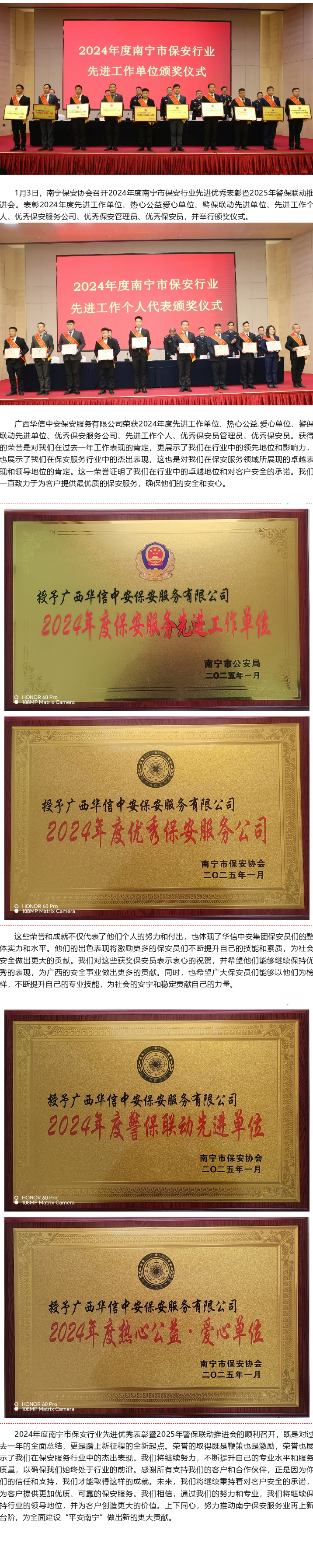 【喜报】广西华信3044永利集团保安服务有限公司获南宁市公安局、南宁市保安协会授予多项荣誉