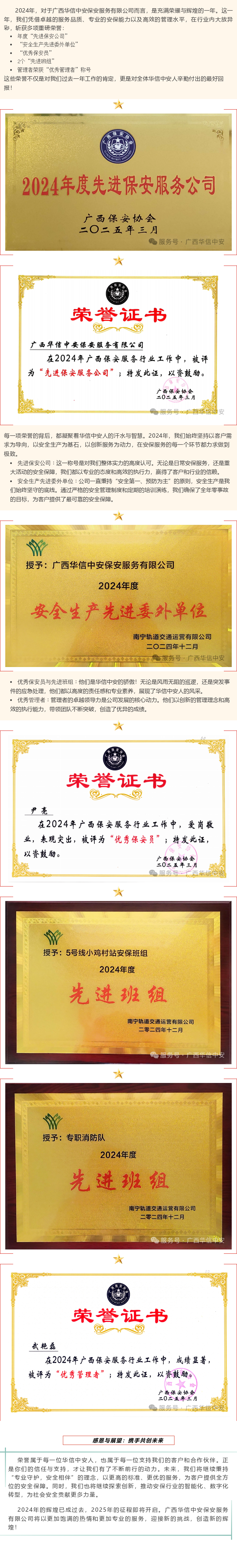 广西华信3044永利集团保安服务有限公司斩获多项殊荣,实力诠释行业标杆