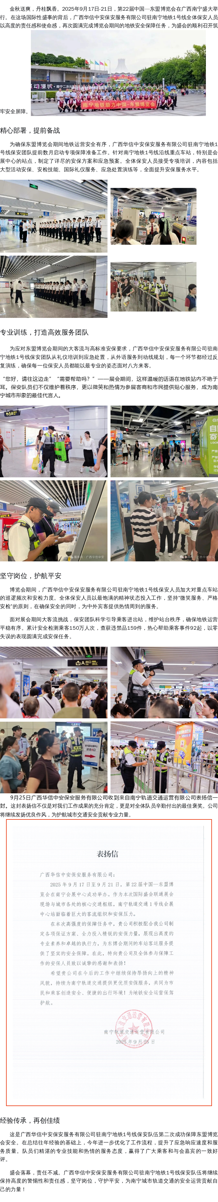 护航盛会,坚守平安 | 广西华信3044永利集团保安服务有限公司驻南宁地铁1号线项目圆满完成第22届东盟博览会安保任务