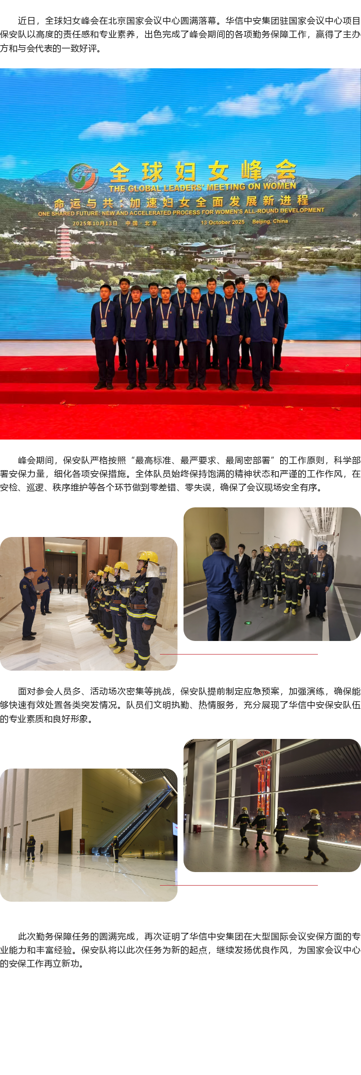 华信3044永利集团驻国家会议中心保安队圆满完成全球妇女峰会勤务保障任务