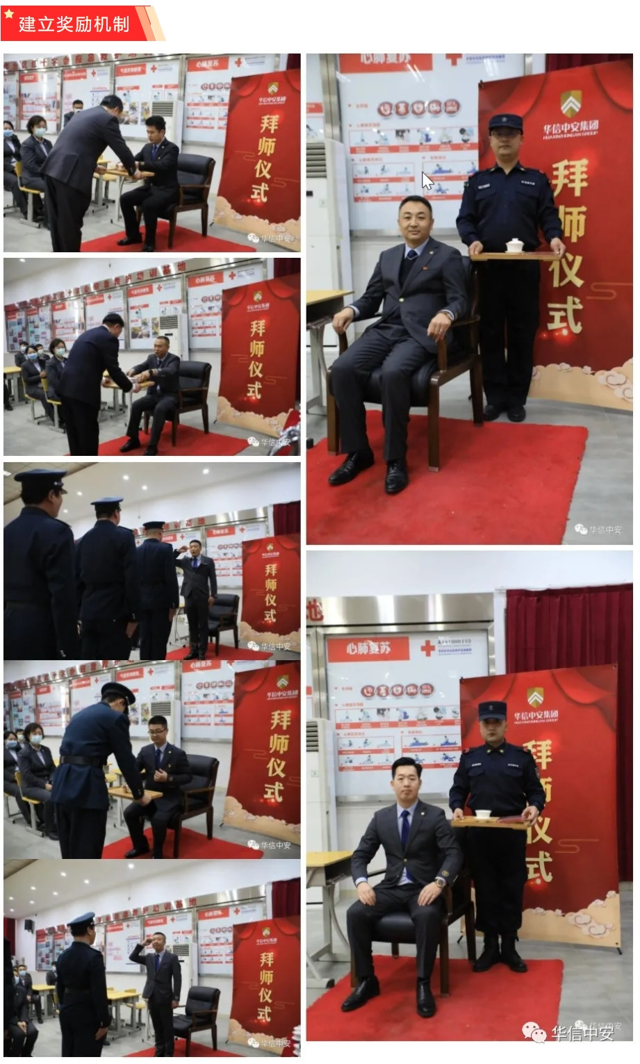 "导师带徒 工匠传承"管理制度的有效推行,需要多方面的支持,尤其是企业管理者将其上升到企业战略层面进行顶层设计,建立完善的制度予以长期贯彻执行。华信3044永利集团集团"导师带徒 工匠传承"管理制度推行之初,就在具体实施方案中明确规定了选师范围、选徒范围、带徒周期、师傅竞选程序、师徒责任、出徒标准等具体细则。并随着此项管理制度的深入推行对管理实施方案进行了逐步修改和完善,在方案中进一步明确了师傅和徒弟的责任与权利,学徒出徒的各项要求和出徒的标准。在导师筛选过程中,严格按照个人申请、基层单位推荐、保安管理部审核、品控中心复核、开展任前培训、保安运营管理中心考核等选拔程序挑选专业素质优秀、品格过硬的优秀保安员代表作为师父,使每一位师傅都能树立一面旗帜,不仅在保安业务技能上对徒弟言传身教,还能通过自己的匠心来影响徒弟。