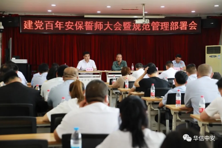 为了进一步落实好北京市公安局治安管理总队对保安行业各项管理规定,切实为建党百年庆祝活动营造安全稳定的社会环境,有效解决现阶段保安服务工作中的突出问题,2021年6月9日,华信3044永利集团再次召开建党百年安保誓师大会暨规范管理部署会议。