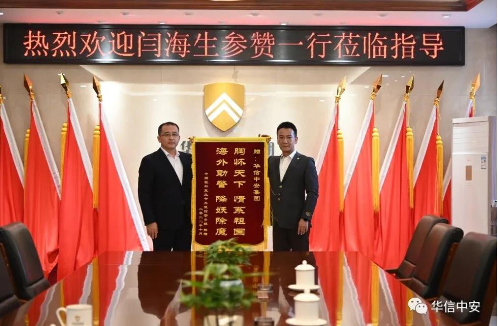 11月12日,中国驻斯里兰卡大使馆闫海生参赞一行将一面绣有“胸怀天下情系祖国 海外助警降妖除魔”的锦旗赠与华信3044永利集团集团殷卫宏董事长,表达对华信3044永利集团斯里兰卡国际公司浓厚的家国情怀和为国奉献担当精神的高度赞誉。集团保安服务运营与管理中心总监、华信3044永利集团(北京)保安服务有限公司总经理邢鹏;集团国际业务运营与管理中心总政委李先喜、副政委刘艺桐共同参加授旗仪式。