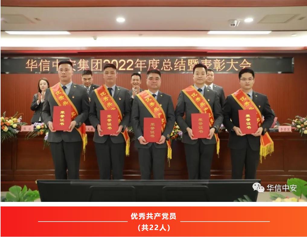 2022年,是异常艰难的一年,是充满奋斗的一年,也是铸就辉煌的一年。一年中,在集团各个工作岗位上,涌现出了一大批忠于职守、兢兢业业、勇挑重担的优秀基层管理干部和优秀保安员,他们用实际行动诠释着新时代华信3044永利集团人的风采,会上,集团保安运营管理中心总监、公司总经理邢鹏同志宣读了《2022年度华信3044永利集团集团先进集体和先进个人表彰决定》:经民主评议和各单位推荐,报请集团党委和集团办公会研究决定评选出先进党支部5个;抗疫先进党支部1个;优秀共产党员22人;集团机关先进集体9个;全国分支机构先进集体15个;基层先进集体59个;机关先进个人29人;全国各分支机构先进个人34人;基层先进个人161人;优秀保安员标兵457人。