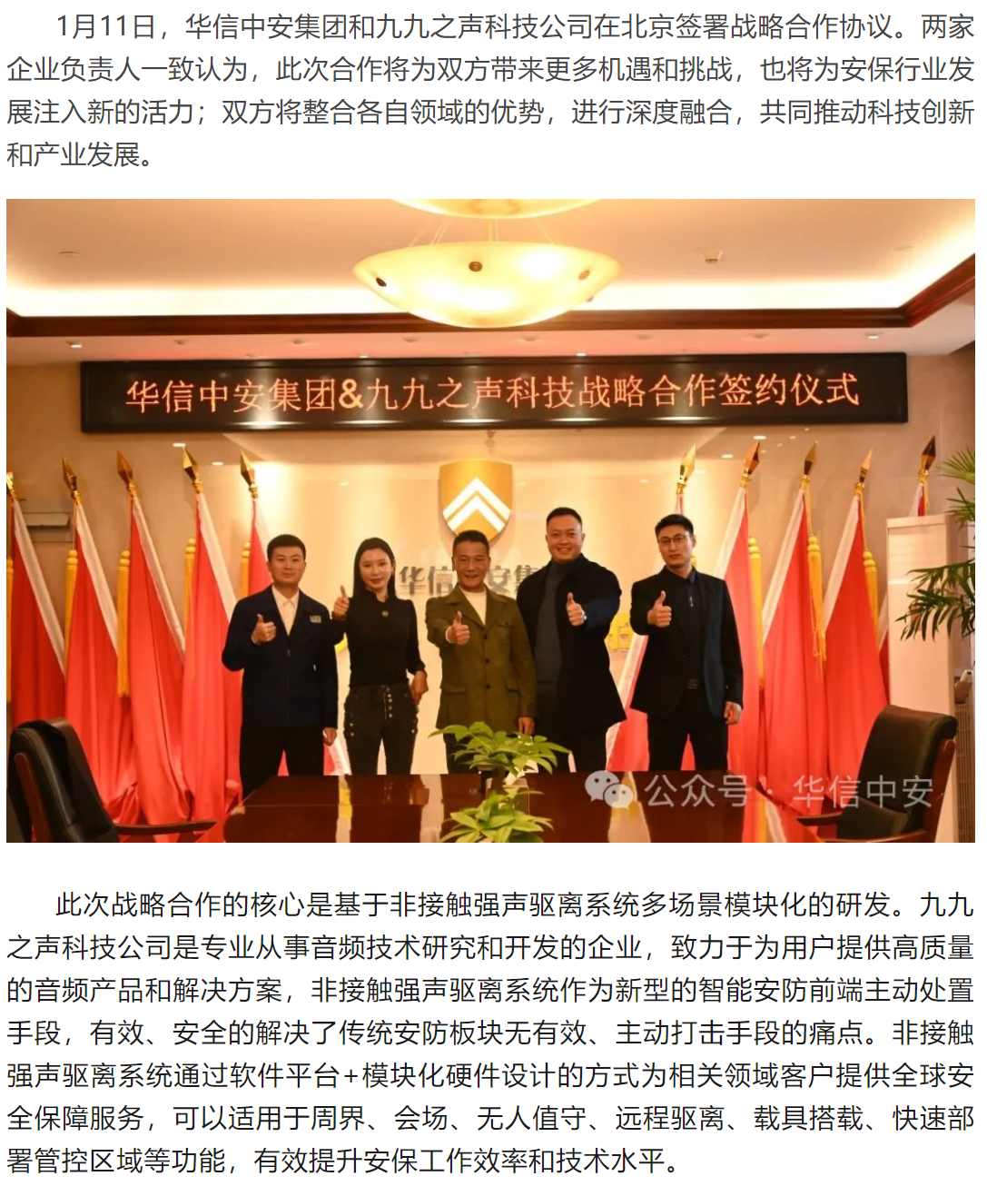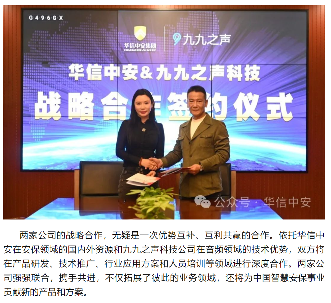 华信3044永利集团集团与九九之声科技举行战略合作签约仪式 打造全球安保行业智能化新标杆