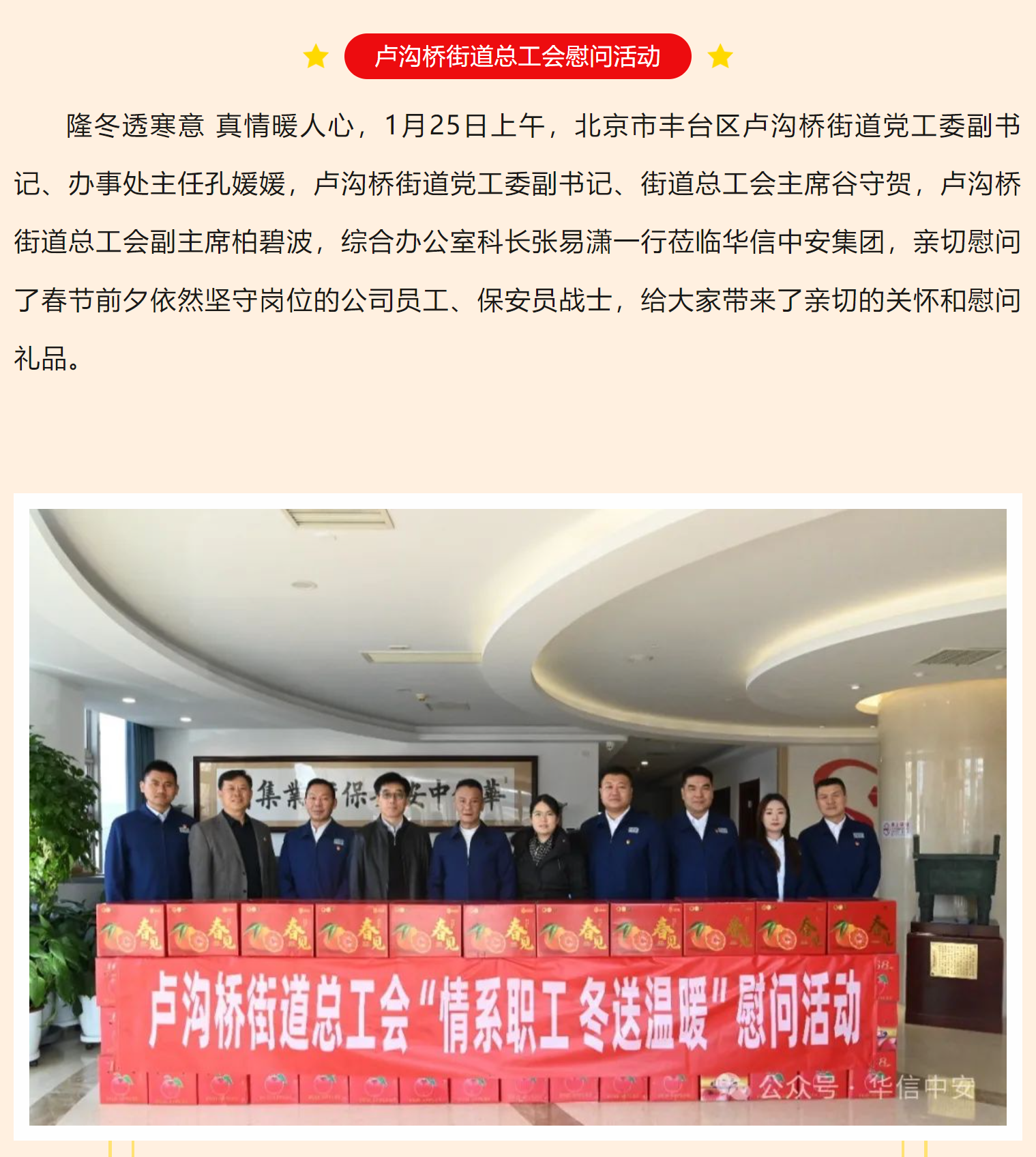 情系职工 冬送温暖 | 卢沟桥街道总工会领导莅临华信3044永利集团开展“新春送温暖”慰问活动